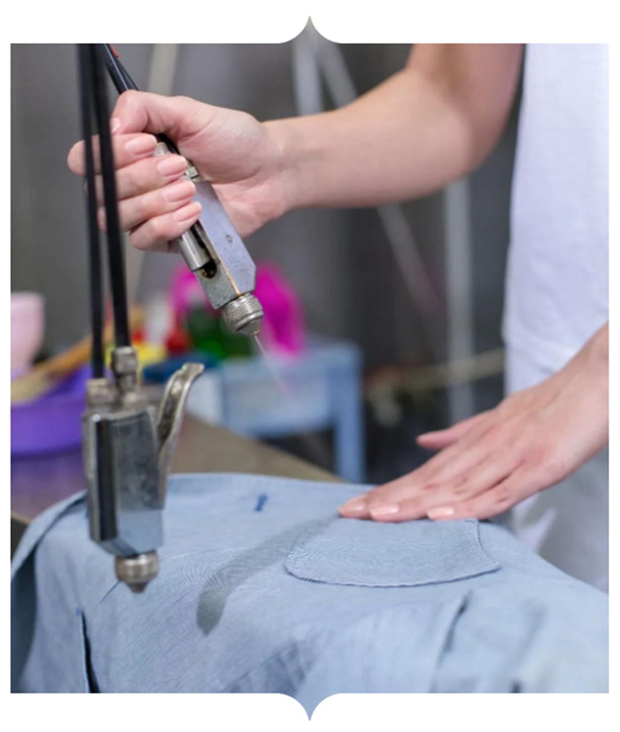 正常情況下,干洗后要進(jìn)行恢復(fù)性整燙。大部分情況下,這些整燙是某種形式的蒸汽整燙或熱壓整燙。