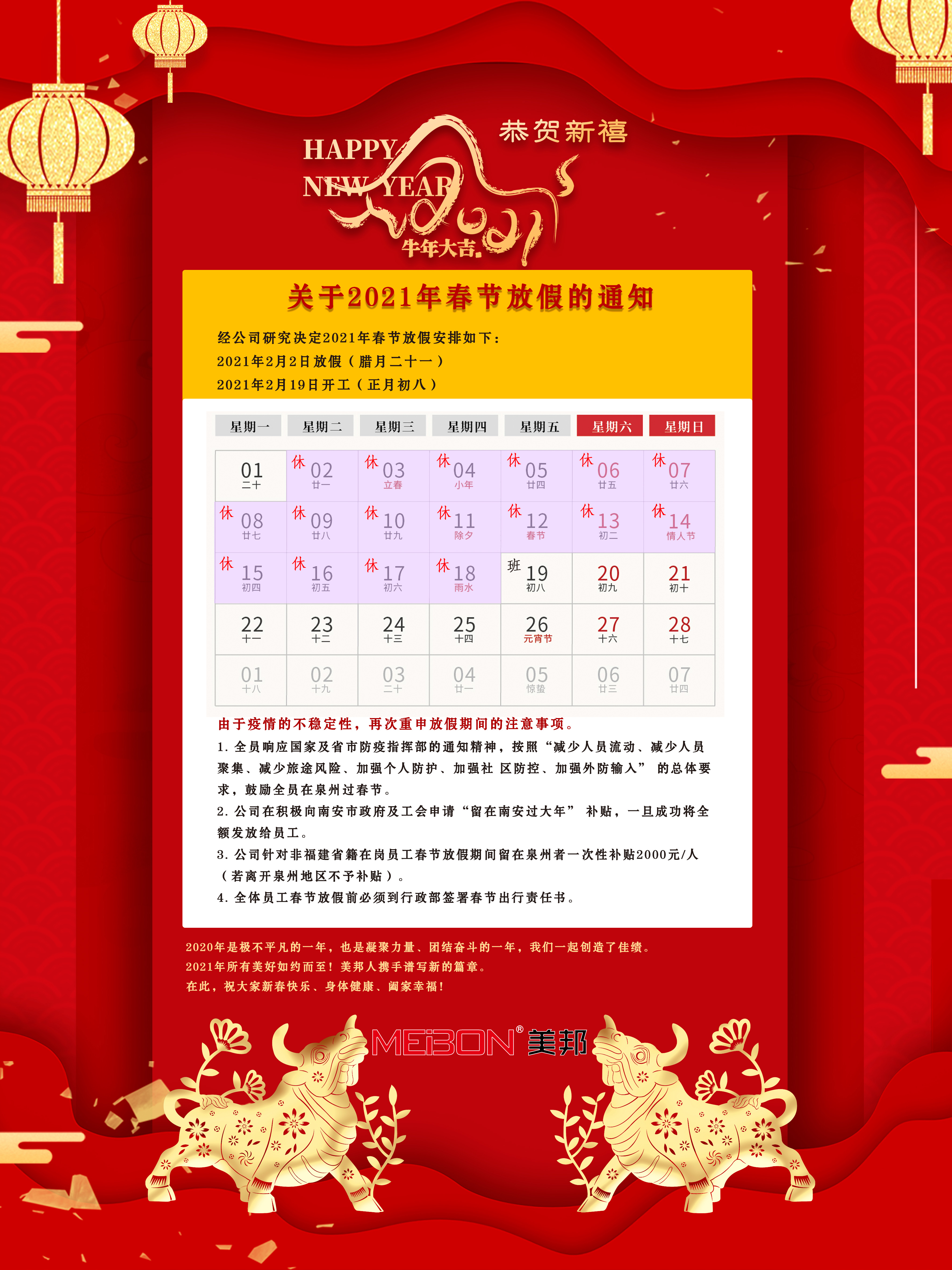 美邦儀器2021年春節(jié)放假通知