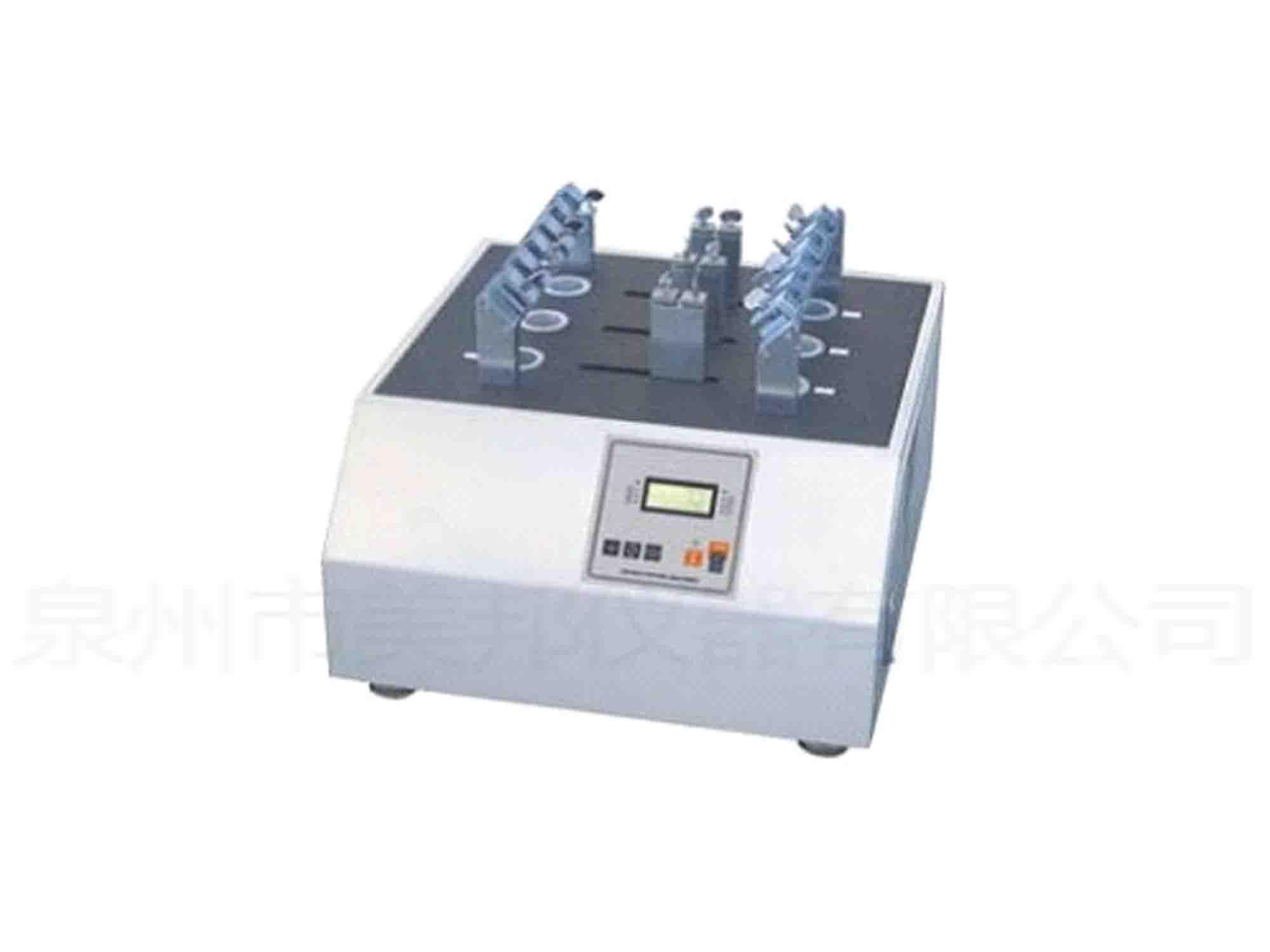 This machine is applicable to wear resistance test of all shoelace and shoe eye. In order to detect the wearability of the shoelace and the shoe eye, the shoelace will bend a certain angle through the eye of the shoe and pull it repeatedly under the standard load. At the same time, we can test 6 groups of samples and do not interfere with each other.