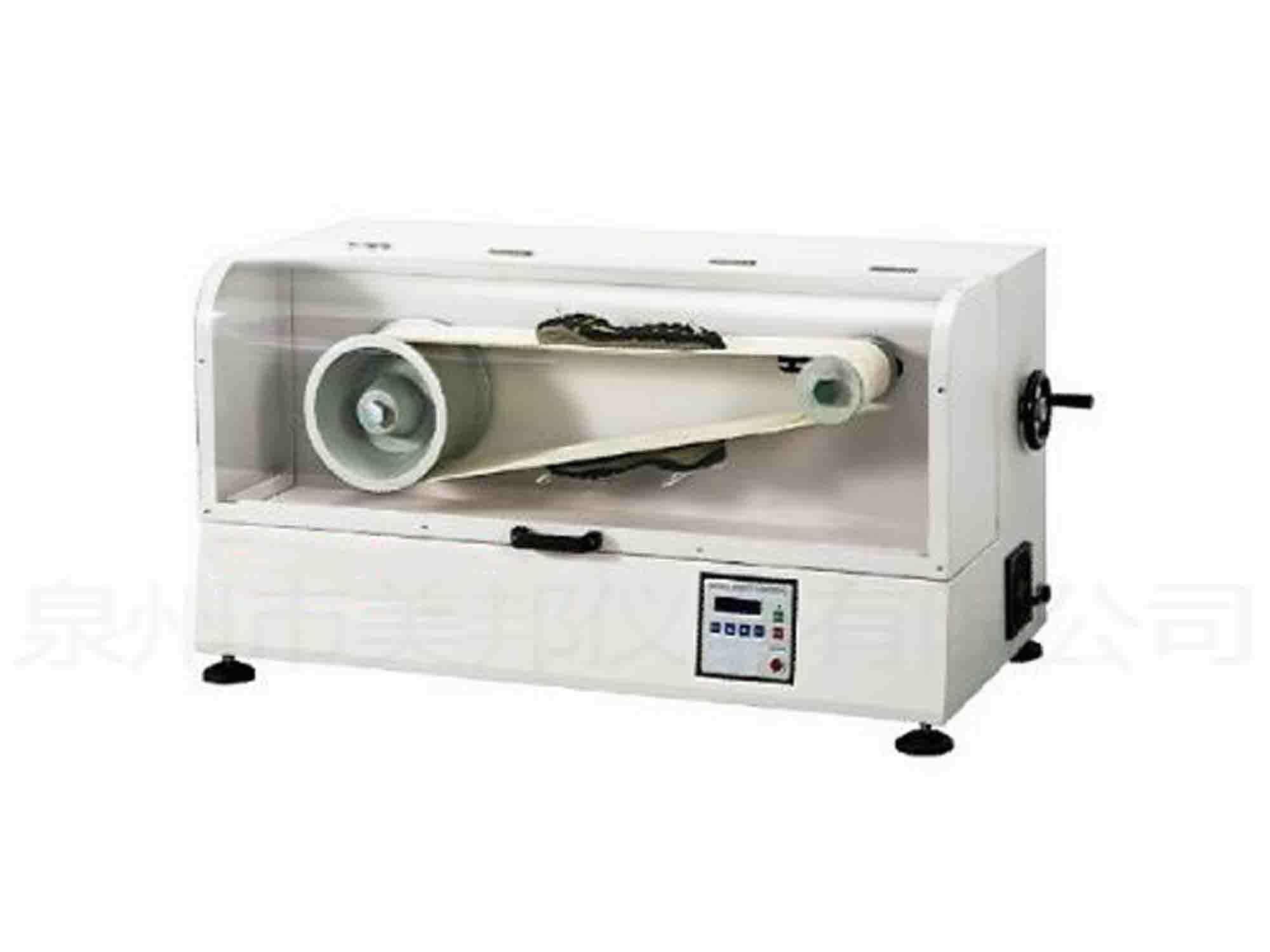 This machine is used to test the test in the sole material circulation around the drive roller of tape, to observe the degree of bending resistance. The action is composed of a large wheel driven ferry, to turn the tape drive. The small wheel has three sizes for replacement and comparison test results.